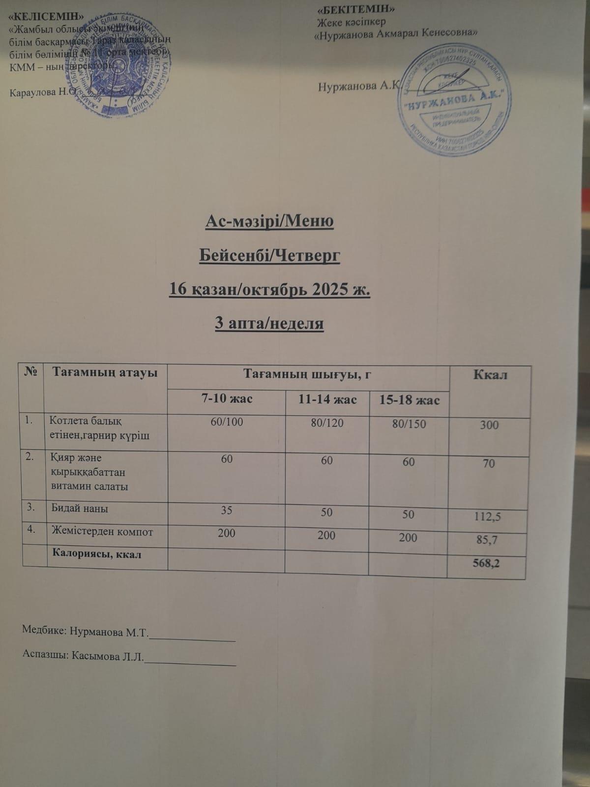 03 қыркүйек 2025 Ежедневное меню