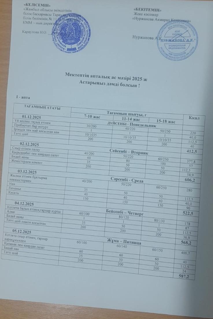 15 қыркүйек 2025 Меню